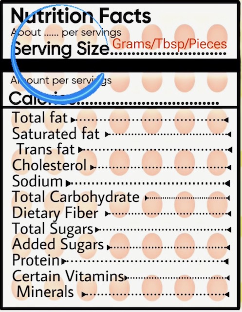 Serving size information is provided at the top of the label indicating the recommended portion size for that food or beverage. The serving size is usually listed in measurements such as grams, tablespoons or pieces, making it easier to understand. All the information presented on the label, including the amounts of nutrients and calories, relates to one serving of the product e.g. if a serving size of a cereal is listed as 30 grams and that label states that it contains 100 calories, 1g of fat and 25g of carbohydrate, these values are for one serving of the cereal. If you are interested in knowing the nutritional value if you consume more than 30g of the cereal, you will need to adjust these values to accurately reflect your intake. Remember, the serving size is a general indicator and not a recommendation for everyone.